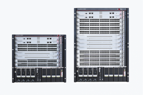 CloudMatrix 12500E 系列智能路由交换机(简称CM12500E)定位于大型园区网核心,最大可给予 288*100GE ,可满足不同网络规模及场景的建网需求。